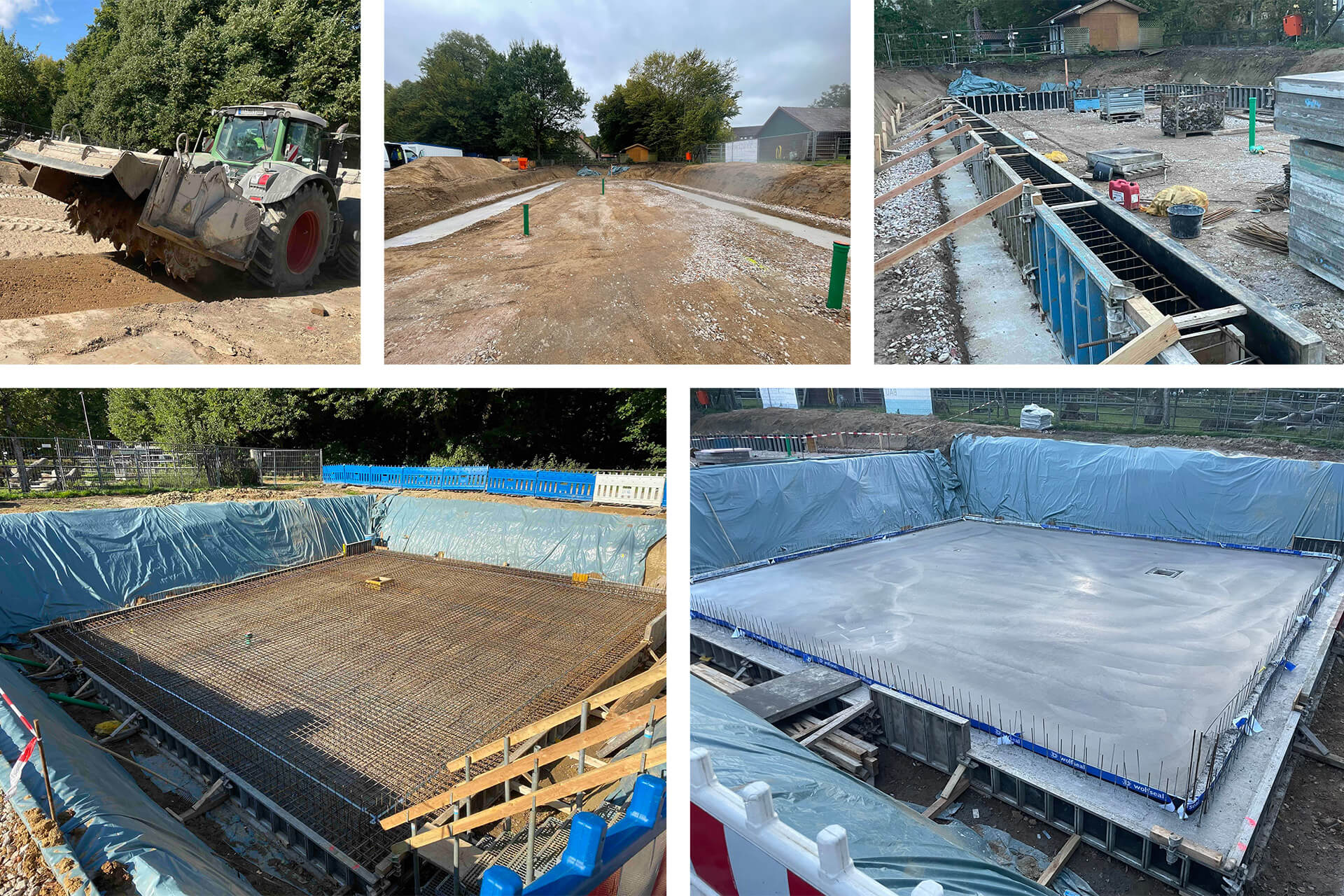 Der Baugrund wurde mit Kalk stabilisiert, es folgt noch eine kapillarbrechende Kiesschicht.