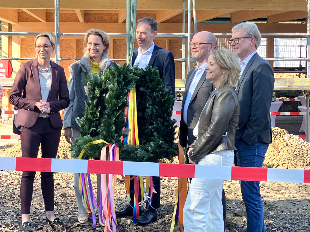Bei strahlendem März-Wetter konnte heute am Umwelt- und Begegnungshaus im Tierpark Olderdissen der Baufortschritt mit Richtfest gebührend gefeiert werden.