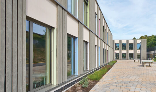 Das Schulzentrum der Stadt Enger hat im Laufe der Jahre vielfältige Erweiterungen, Umbauten und Umnutzungen erfahren. Die inhaltlich und baukörperlich formale Trennung der einzelnen Nutzungen ging verloren, sehr zum Nachteil der funktionalen Organisation und einer guten Orientierung. Daher wurden gleichartige Nutzungen gebündelt, um so den formalen Einklang zwischen äußerer Hülle und innerer Funktion wiederherzustellen. Die Unterrichtsräume sind geprägt durch ein hohes Maß an Transparenz und Helligkeit. Der übliche Klassenschrank wurde ersetzt durch Sideboards, die gleichzeitig als Arbeitsflächen und Ablage dienen. Großflächige Pinnwände sorgen zudem als absorbierende Elemente für eine gute Akustik.